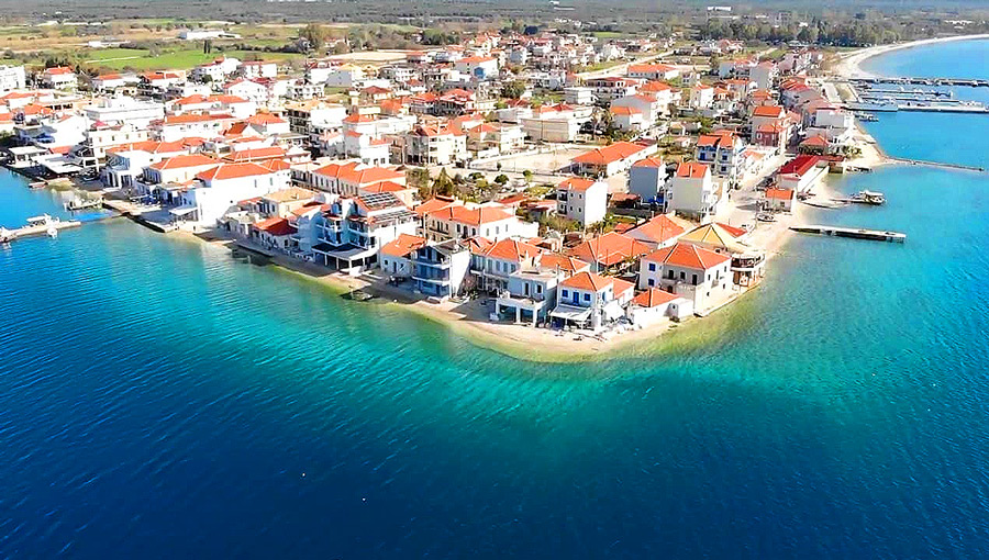Ο οικισμός είναι χτισμένος στον αιγιαλό με τα σπίτια και τις επιχειρήσεις να βρέχονται κυριολεκτικά από τη θάλασσα, ενώ ένας κεντρικός πλακόστρωτος δρόμος συνδέει την είσοδο του χωριού με το λιμάνι και προσφέρεται για περιπάτους, ενώ τις απογευματινές ώρες των θερινών μηνών απαγορεύεται η έλευση οχημάτων και στο δρόμο ξεχύνονται παιδιά με ποδήλατα, δίνοντας στο χωριό μια παιχνιδιάρικη ζωντάνια.